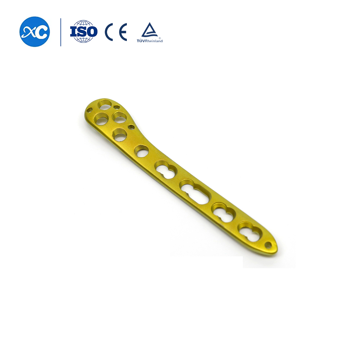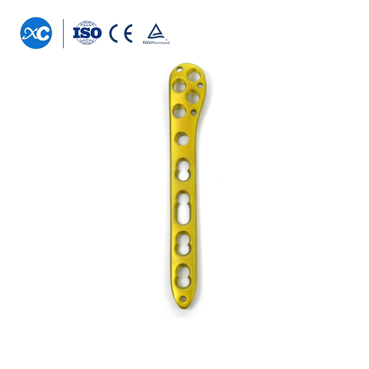 Дистальная блокирующая пластина малоберцовой кости доступна из титанового материала (TC4, чистый титан). Головка фиксирующей пластины дистального отдела малоберцовой кости LCP имеет 4 круглых резьбовых отверстия для блокировки, она принимает стопорный винт 3,5 мм и кортикальные винты. Низкопрофильная конструкция эффективно снижает повреждение мягких тканей, способствует быстрому восстановлению кости.