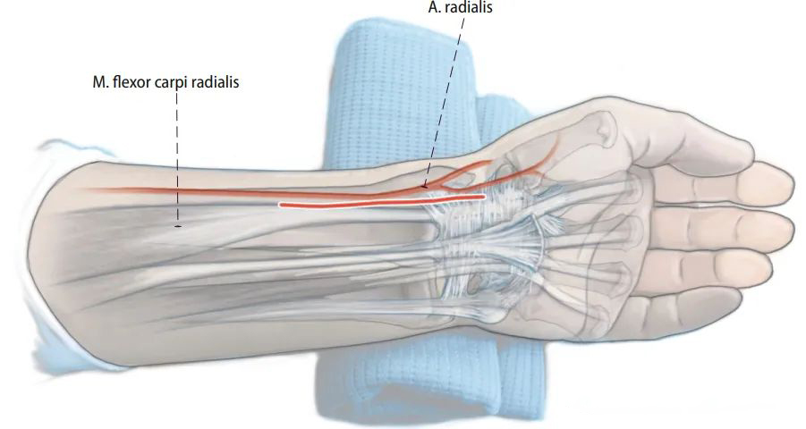 Доступ Генри — наиболее часто используемый хирургический доступ на ладонной стороне лучевой кости. Он входит между лучевой артерией и лучевым сгибателем запястья и заканчивается дистальнее поперечной складки запястья (некоторые ученые используют Z-образный разрез или расширяют его). напрямую).